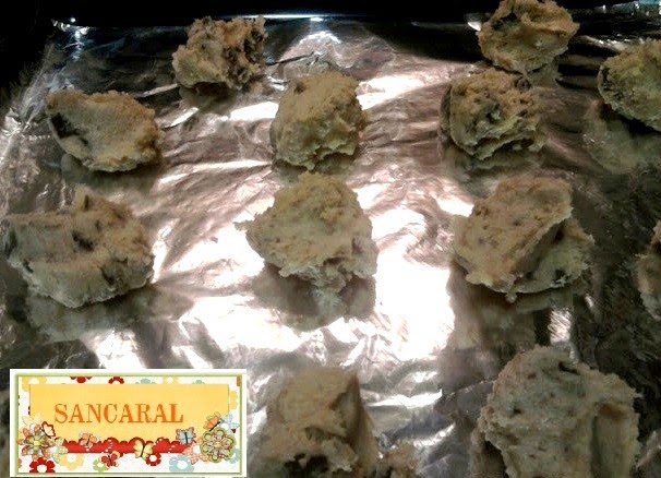Ahora solo tienes que colocarlos en la bandeja del horno, usa dos cucharas para hacer los montoncitos o puedes usar una cuchara para helados así te quedaran mas perfectas, Recuerda dejar espacio entre los montones de masa para que las galletas no se peguen.