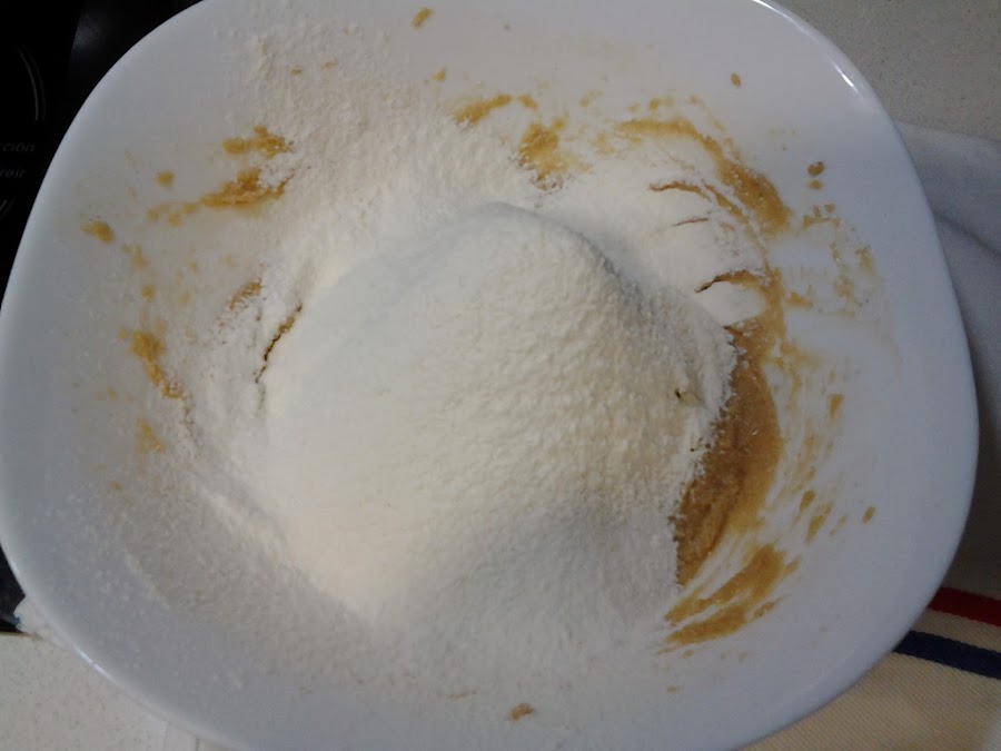 Añadimos la harina tamizada junto a la levadura hasta integrar bien todos los ingredientes.