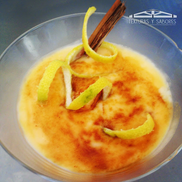 Añadir a la leche y cocer en un cazo a fuego medio sin dejar de remover para evitar que se agarre en las paredes del cazo. Reservar en cámara. -Arroz con leche