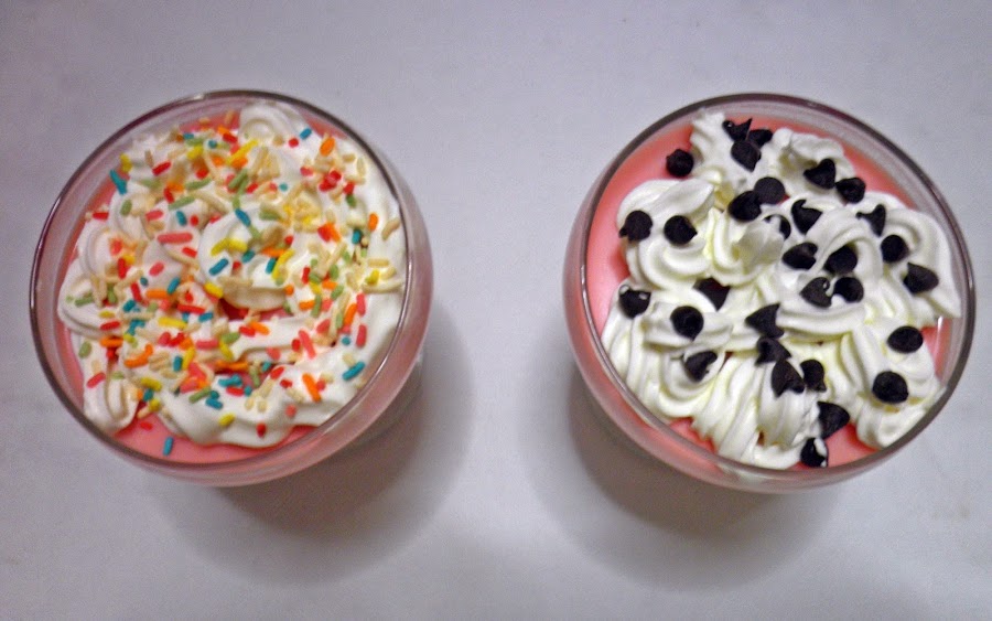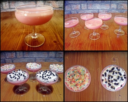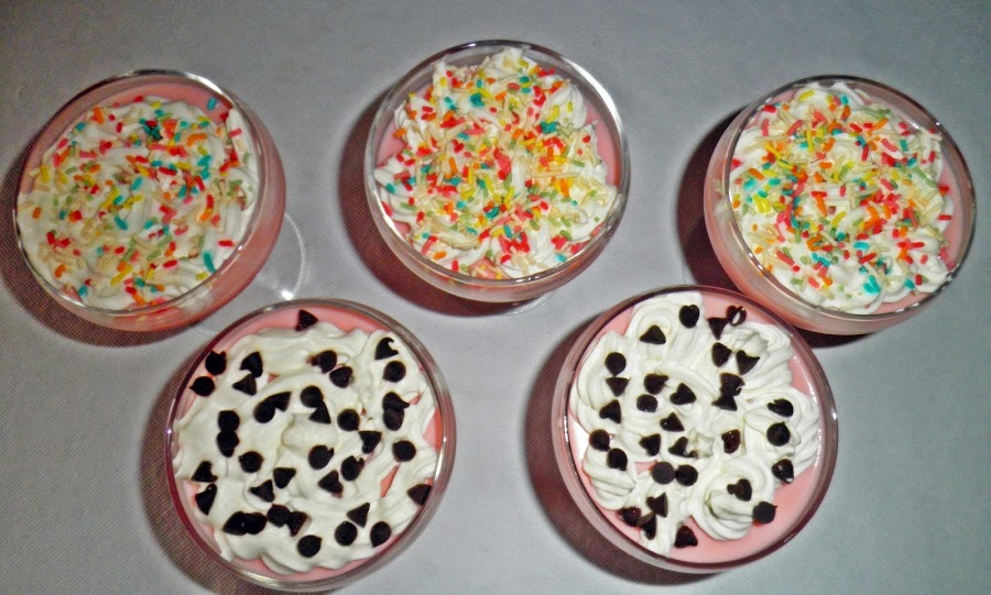 Y terminar decorando unas copas con virutas de colores y otras con trocitos de chocolate.