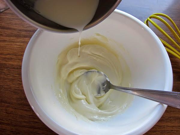 Incorporamos la nata montada (crema de leche) con unas varillas manuales mediante movimientos envolventes hasta que nos quede una crema suave.