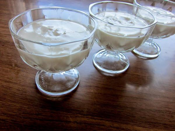 Dividimos la mezcla en las copas y la dejamos reposar en la nevera como mínimo unas dos horas. Mejor de un día para otro.