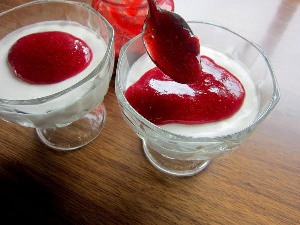 Una vez que haya cuajado echamos una cucharada de mermelada en cada copa.