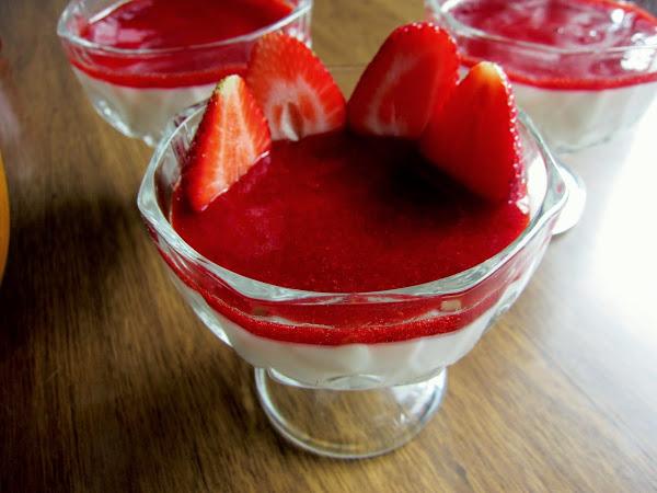 Estas copas las preparé con media terrina de queso y un brik pequeño de nata (crema de leche) que tenía en la nevera, nos gustaron tanto que este fin de semana hemos vuelto a repetir. Reconozco que la mermelada de fresa recién echa le aporta un sabor y un color espectacular.