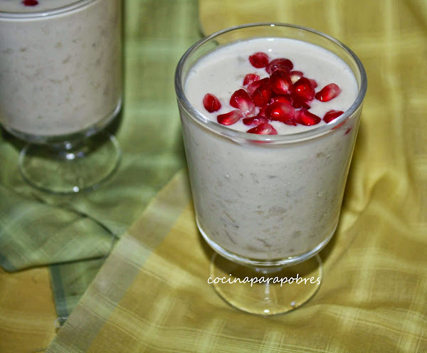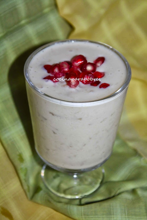 Dejamos enfriar y servimos en copitas decorando con la fruta que mas nos guste y tengamos según temporada, en mi caso usé granada.