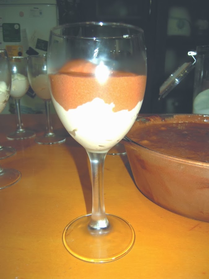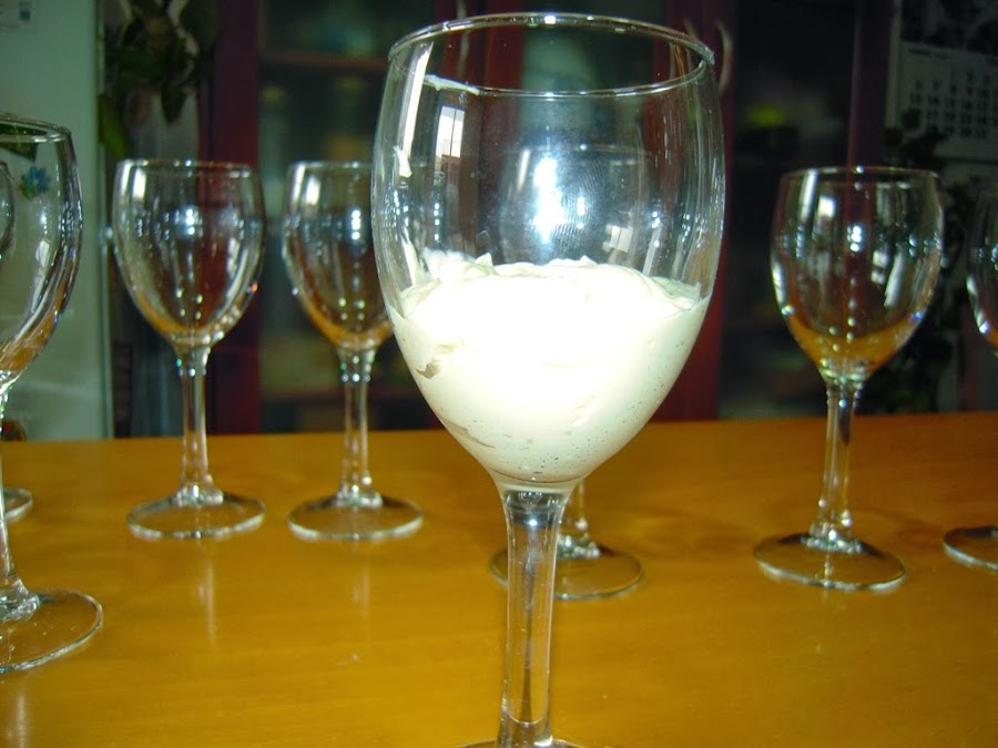 Y finalmente se pone con ayuda de una cuchara o de una manga pastelera en el fondo de la copa.