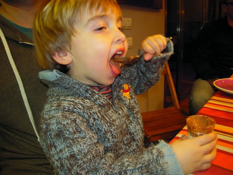 Esta copa la hice hace un par de días para llevarla a una cena de amigos, desde el más pequeño al más grande disfrutaron comiéndola. Aquí os pongo una foto de Gael, el menor del grupo, para los niños hice vasitos, en vez de copas.
