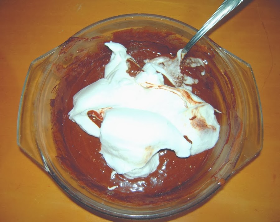 A continuación se montan las claras a punto de nieve con el azúcar restante y se añaden poco a poco al chocolate.