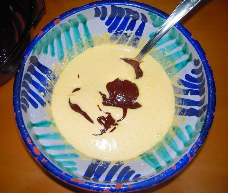 Seguidamente se añade a la mezcla un poco de chocolate derretido y lo mezclamos bien.