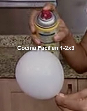 7. con una tijera hacerle un orificio al globo para que salga el aire y se desinfle. cuando este desinflado, remover lentamente de la copa de chocolate.