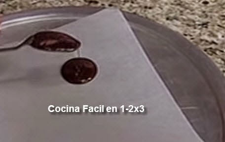 3. En una charola con papel de cera o mantequilla colocar con una cuchara un pequeña rueda de chocolate. tal y como se ve en la imagen .