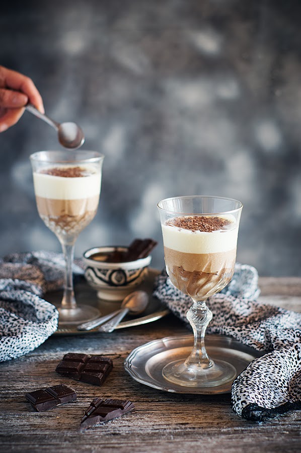 Cuando ojeo un libro de repostería, lo que lleva chocolate es lo que más me tienta y lo primero que suelo hacer. En este caso, fue la tarta de tres chocolates del precioso libro de Kanela y limón la que me hizo caer en la tentación y disfrutar de ella versionada en estas deliciosas y sencillas copas.