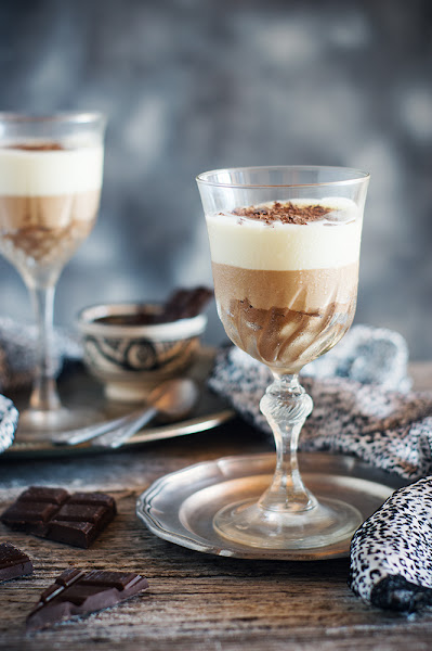 Cuando ojeo un libro de repostería, lo que lleva chocolate es lo que más me tienta y lo primero que suelo hacer. En este caso, fue la tarta de tres chocolates del precioso libro de Kanela y limón la que me hizo caer en la tentación y disfrutar de ella versionada en estas deliciosas y sencillas copas.