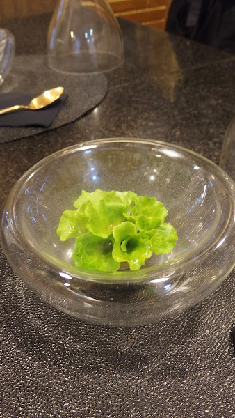 Allí probamos la lechuga Batavia ahumada y estofado de ternera con polifenoles del vino.
