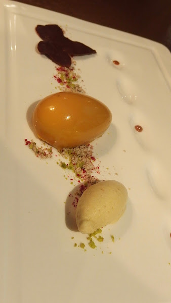 Bien merecida su popularidad. Piel súper crujiente, carne muy jugosa a pesar de que no se acompaña con prácticamente nada de salsa, el acompañamiento es un puré de ciruela especiado y melocotón. Es el perfecto final a la parte salada de este menú redondo.