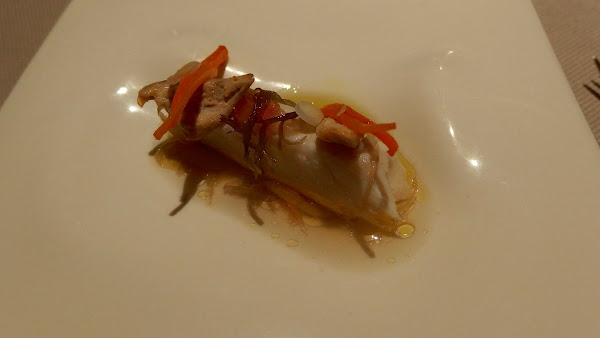 Un suave escabeche y una perfecta textura de la lubina, la perdiz de delicado sabor, acompañando el pescado. Un plato realmente delicioso.