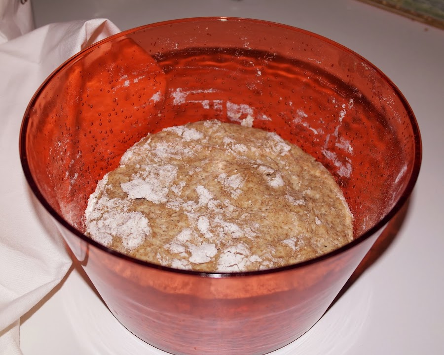 Verter en un bol el vaso de agua, os aconsejo que la pongáis caliente, para que la masa suba antes. Añadir la porción de levadura fresca, el medio vaso de aceite y la pizca de sal. Con una mano deshacer la levadura y poco a poco ir echando la harina, amasando hasta que se pueda despegar de la manos, entonces la tendremos lista, la dejamos reposar en el bol tapándola con un paño hasta que suba.