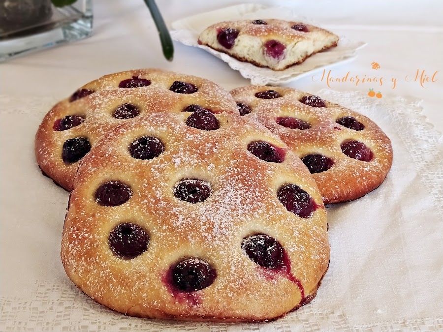 Cuando llegan estas fechas siempre suelo hacer alguna que otra coca de cerezas, este año las he hecho más pequeñas y me he decidido a publicarlas, están buenísimas y al ser más pequeñas se pueden congelar para tener durante más tiempo e ir sacándolas cuando nos apetezca.