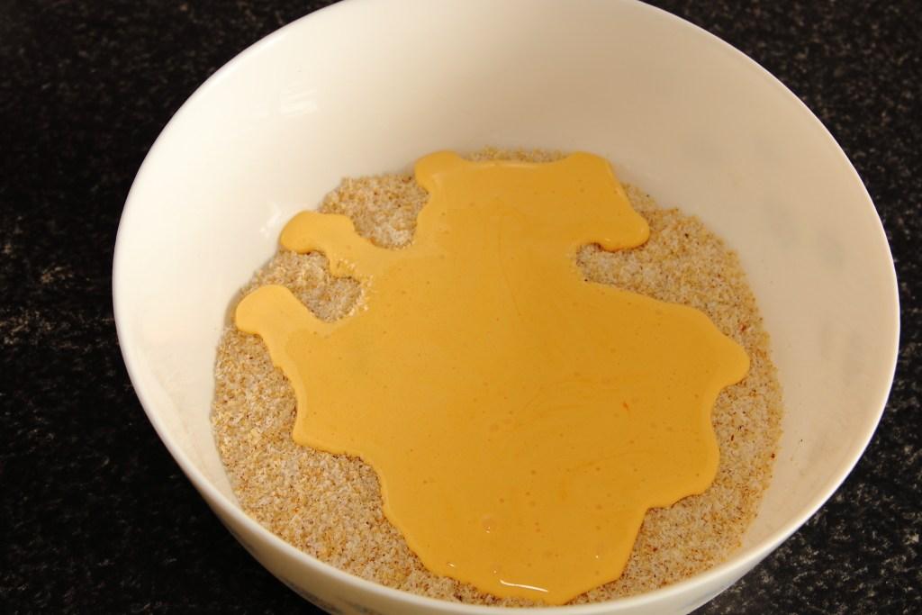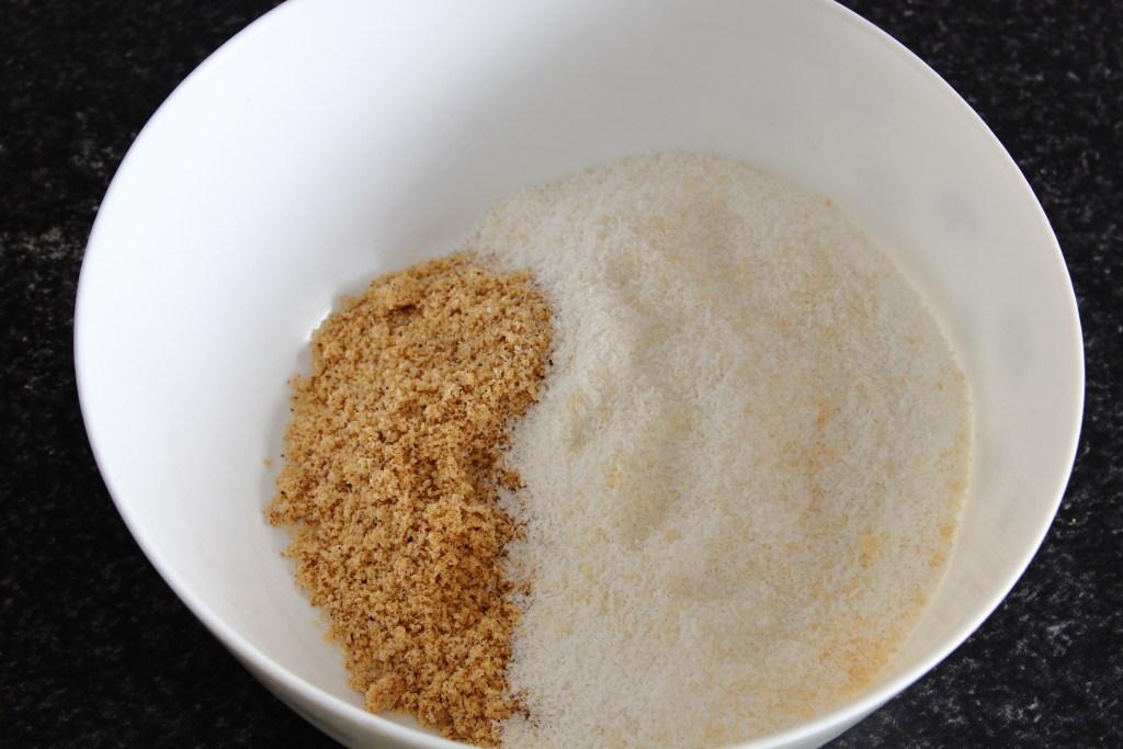 En un bol amplio echamos el coco con las avellanas molidas, mezclamos bien y reservamos.