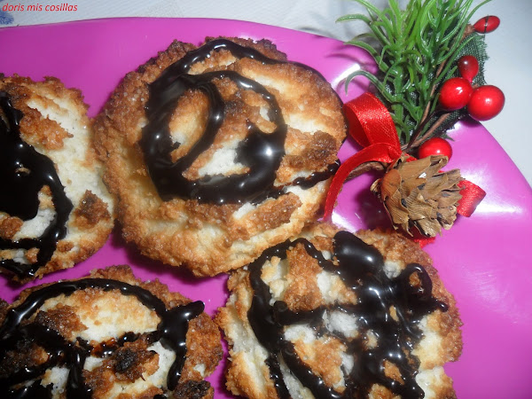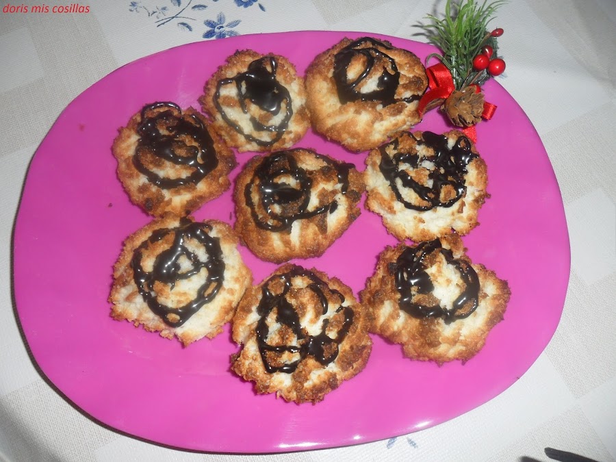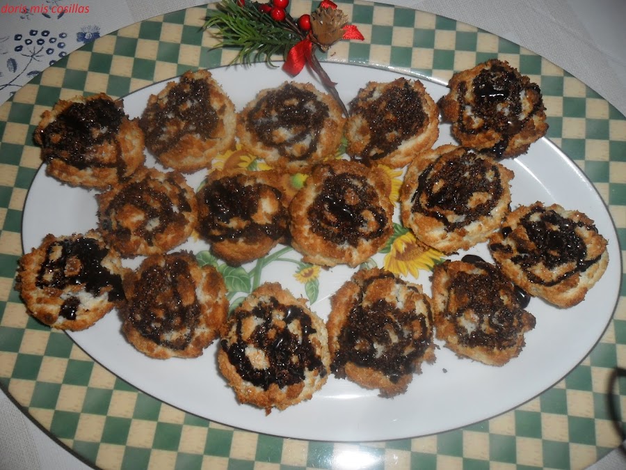Retiramos una vez cocidos los coquitos, dejamos enfriar y bañamos con chocolate haciendo hilos o bañamos la basa también, va en gustos.