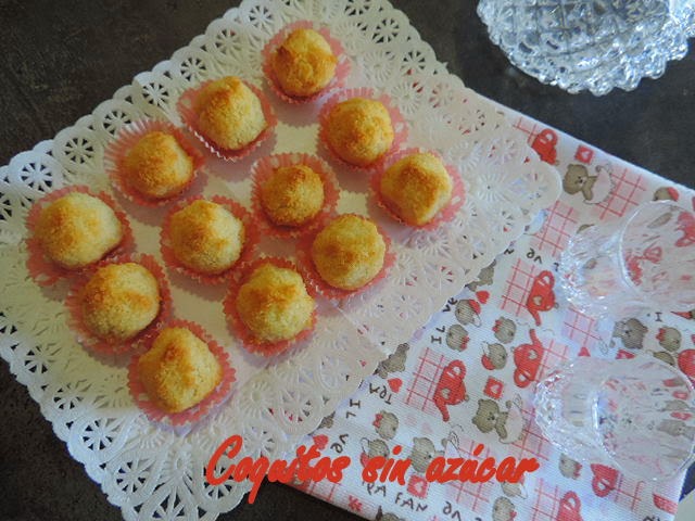 Hacemos unas bolitas las rebozamos con coco rallado y las colocamos en las cápsulas o las colocamos directamente sobre una bandeja forrada de papel de hornear.