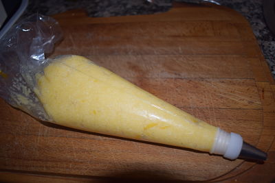Introduce en una manga pastelera con una boquilla grande rizada. Lleva al frigorífico durante dos horas.