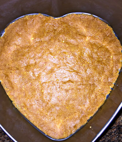 Vamos a hacer la base en el molde en el que haremos la tarta, en este caso con forma de corazón. En este caso primero forré la base con film plástico, para luego poder retirar la tarta de la base del molde. Con el plástico puesto extendemos la masa por el fondo, aplastando con la mano para que se compacte bien y adquiera la forma del molde, tapando bien los bordes para que no se salga la masa de la tarta mientras cuaja. Una vez terminada, la pondremos en la nevera , mientras hacemos el resto de la tarta, para que se endurezca con el frío.