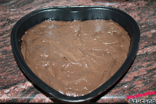 Repartiremos la masa a partes iguales, con ayuda de una lengua repartiremos bien la masa para que llegue bien a los lados, ahora vamos haciendo un pequeño hueco en el centro llevándonos la masa hacia los lados del molde, no debemos profundizar mucho, esto es para que el bizcocho nos salga parejo y no necesitemos cortar.