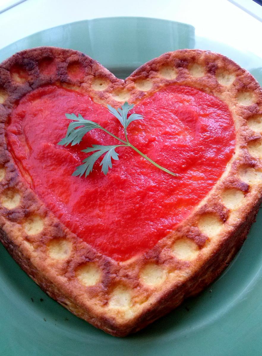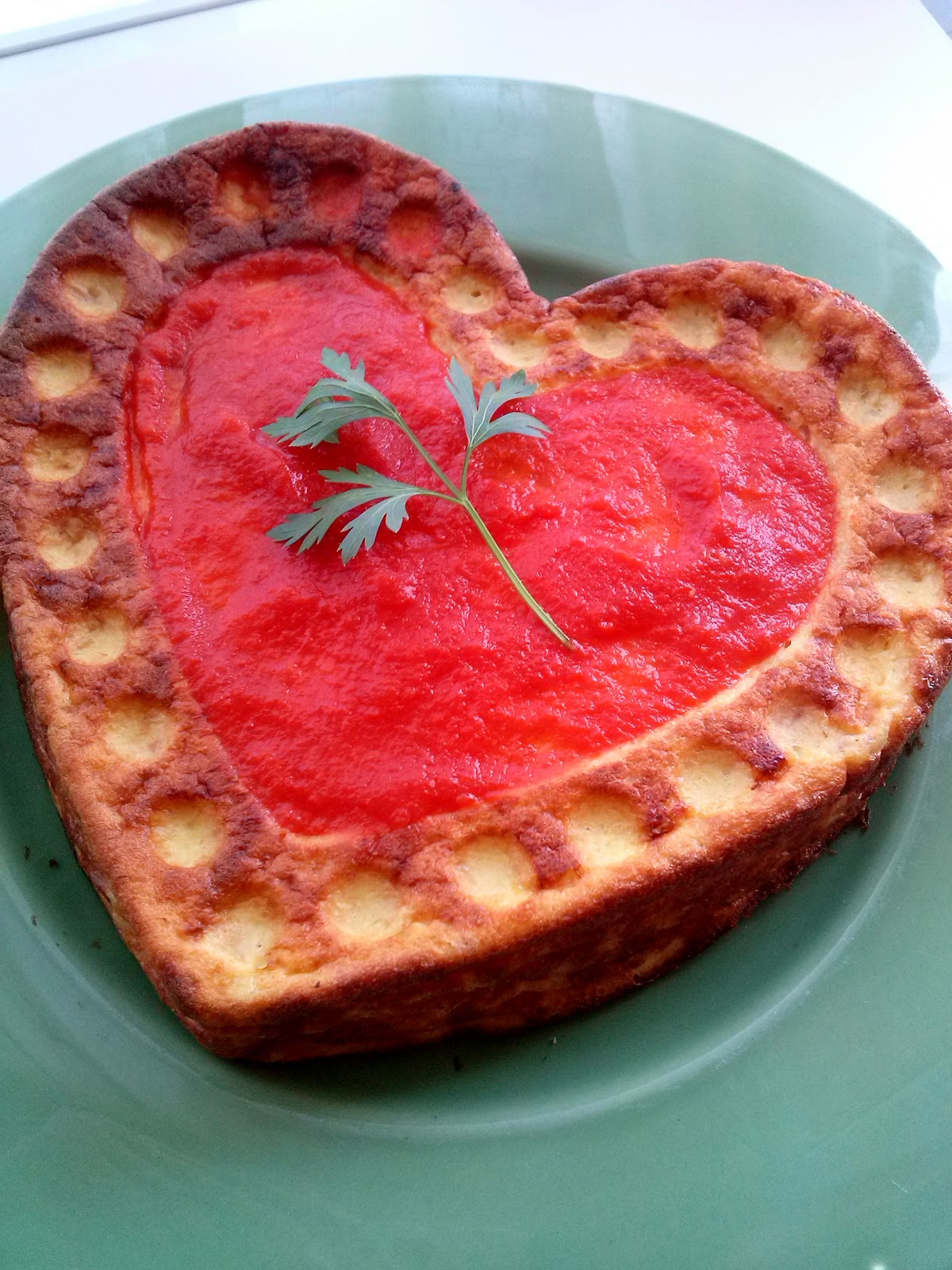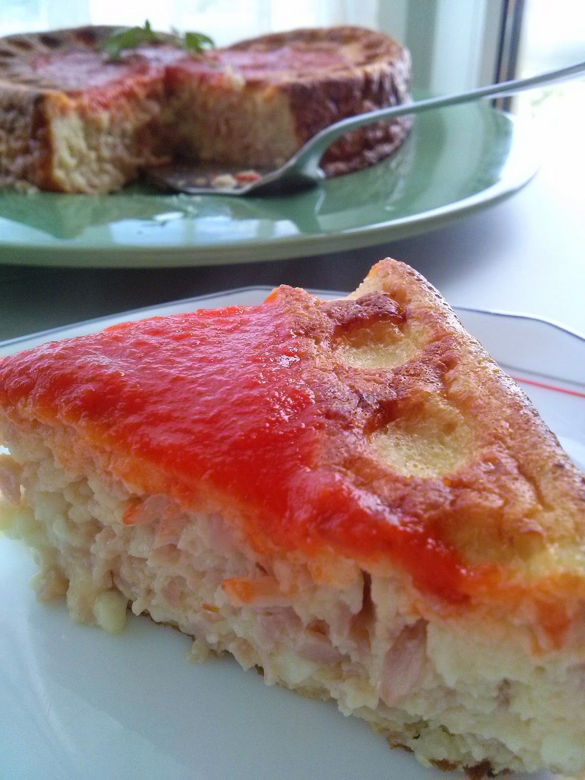 Una vez horneado, saca del horno, deja templar un poco, saca del molde y pinta la superficie con tomate frito.