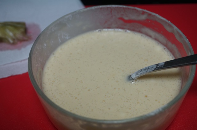 Ponemos una sartén con bastante aceite a fuego medio, untaremos las alcachofas en la pasta de rebozar.