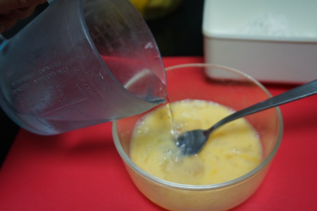 Preparamos el rebozado, tamizamos la harina y añadimos un poco de sal. En un bol batimos un huevo y echamos el agua muy fría, ( lo ponemos un rato antes en la nevera ).