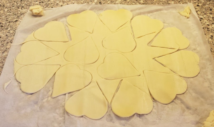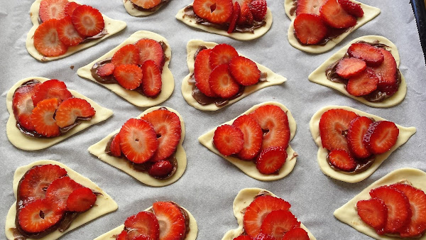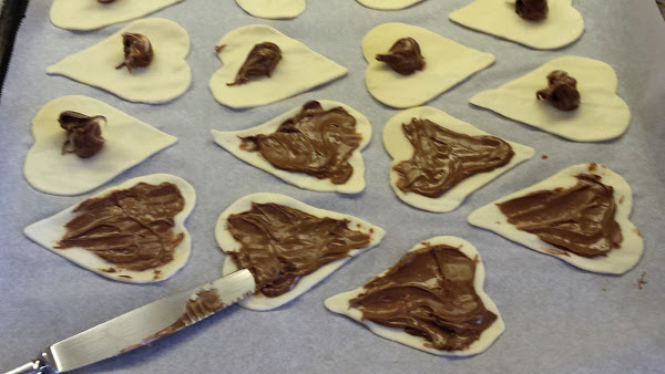 Corazones de hojaldre con Nutella y fresas, preparación: