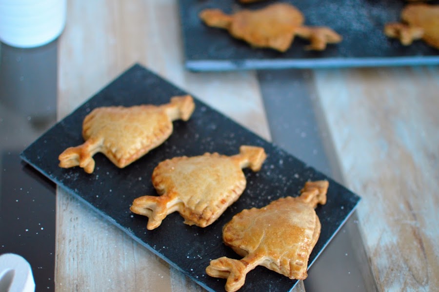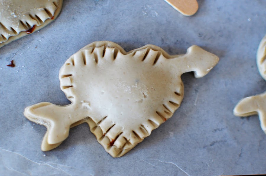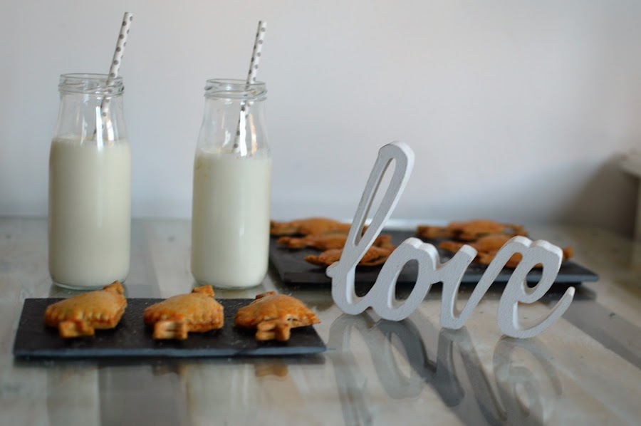 Por úlitmo, tapa coloca la tapa del corazon y con ayuda de un tenedor fija los laterales para que no se despeguen. Solo falta "pintarlos" con un huevo batido y ...¡al horno!