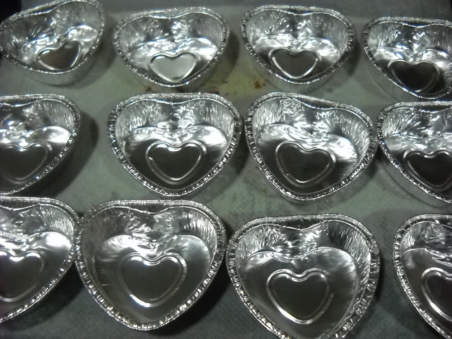 El año pasado para mi cumple me regalaron unos moldes de corazón y los estuve reservando para san valentin....y por fin ha llegado el momento, solo tenia que decidir de que los iba ha rellenar. Me puse ha revisar las recetas y ahí estaba la receta del red velvet, así que allá que me lance.