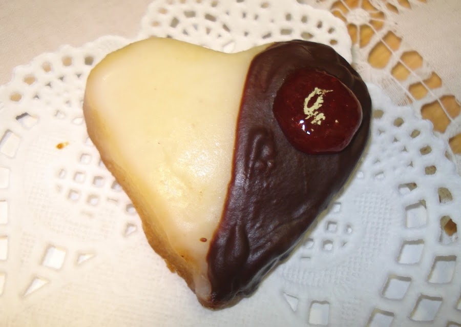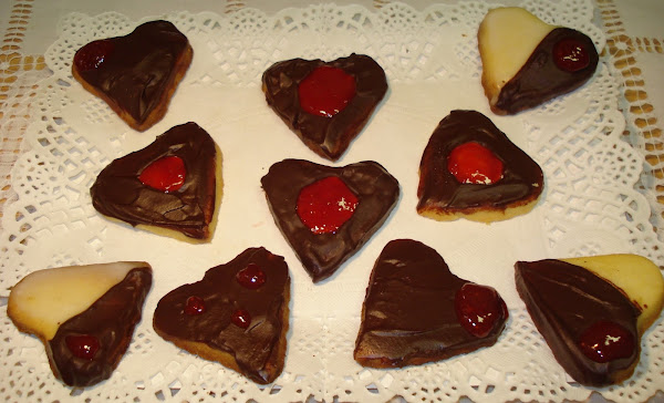 También podemos hacer corazones mitad de glasa y mitad de chocolate.