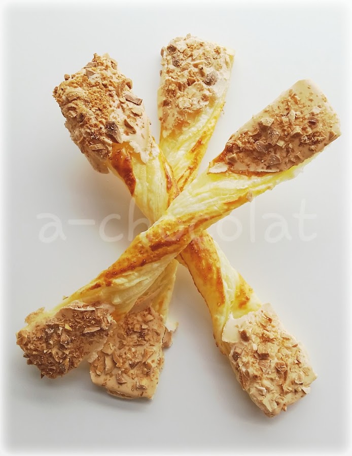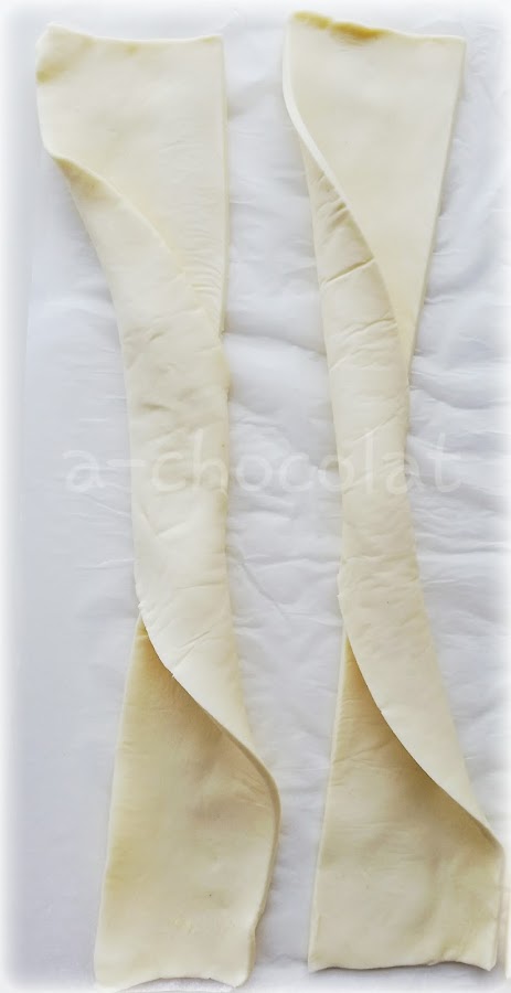 He querido hacer unas corbatas de hojaldre, parecidas a las que hay en Unquera (Cantabria), también conocidas como Corbatas de Unquera. Aunque éstas, os puedo asegurar, que están de rechupete, catadas por paladares tan exquisitos como el de mi hijo de 5 años, y el de mi suegro (gran degustador de dulces). He utilizado masa de hojaldre refrigerado, aunque lo bárbaro sería hacer el hojaldre en casa, cosa que no descarto hacer algún día.