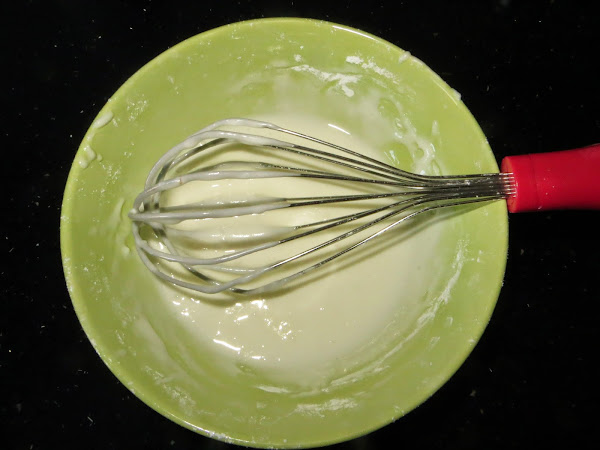 Lo primero que hacemos es cascar el huevo y separar la clara de la yema. Ahora toca preparar la glasa que irá encima de las corbatas. Para ello ponemos en un bol la clara, batimos un poco y vamos añadiendo poco a poco el azúcar glass, mientras le vamos dando vuelta para que quede una crema espesa, ya que si queda demasiado líquida se desparramaría al ponerla encima del hojaldre. No montamos la clara como en otras ocasiones, ya que si no se nos convertiría es merengue y para esta receta no queremos eso.