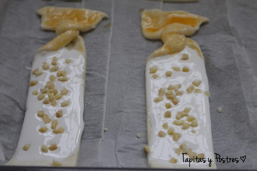 Horneamos a 180º, con calor arriba y abajo hasta que el hojaldre esté dorado y la capa de glasa de haya endurecido.