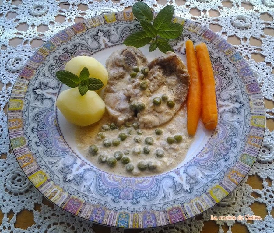 A continuación incorporamos los guisantes y la cucharadita de menta y cocemos a fuego lento durante 10 minutos más, (o hasta que los guisantes estén tiernos).