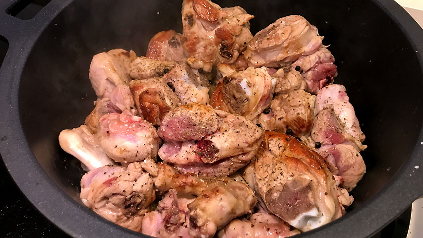 Lo primero es salpimentar, añadir tomillo seco y dorar a fuego alto.