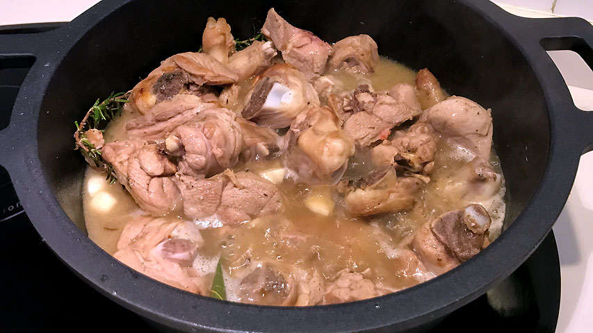 Deja que el caldo se evapore y se transforme en una untuosa salsa. Tardará como media horita pero no la pierdas de vista, ¡se te vaya a pegar!.