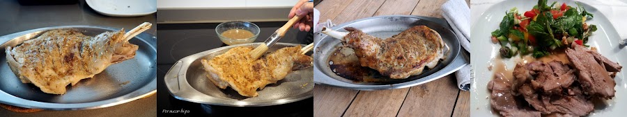 Con una paletilla pequeña como la de las fotos se obtienen 2 o 3 raciones. Para más comensales se puede utilizar la pierna de cordero, a razón de unos 300 g por persona más o menos. A mayor cantidad de carne también hay que incrementar el tiempo de cocción. Por ejemplo para Navidad preparamos unos cuatro kilos de pierna y estuvieron 4 horas en el horno (recordar que es a baja temperatura!).