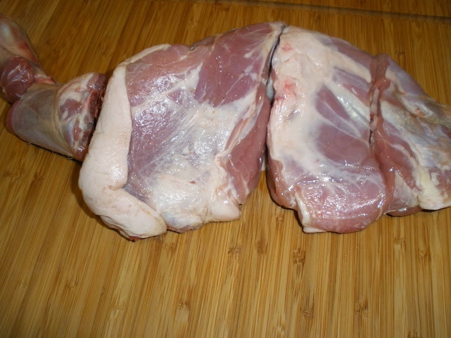 Yo en este caso, elegí una paletilla de cordero recental de 1,1 kg. aproximadamente. Si tenéis la posibilidad es recomendable que el carnicero os la prepare para asar, es decir que le de varios golpes a la carne partiendo el hueso en diferentes puntos, generalmente los cuchillos que tenemos en casa no están preparados para ese tipo de cortes y si lo hacéis por vuestra cuenta en casa casi seguro que vais a sufrir más que otra cosa.
