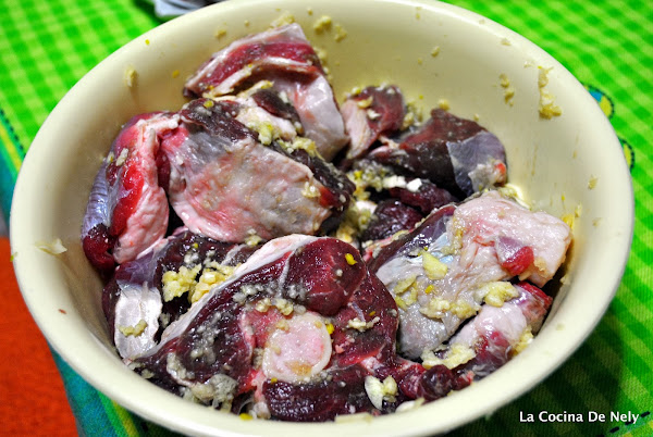 El dia antes de macera el cordero con ajo machacado en el mortero y un puñado de sal.