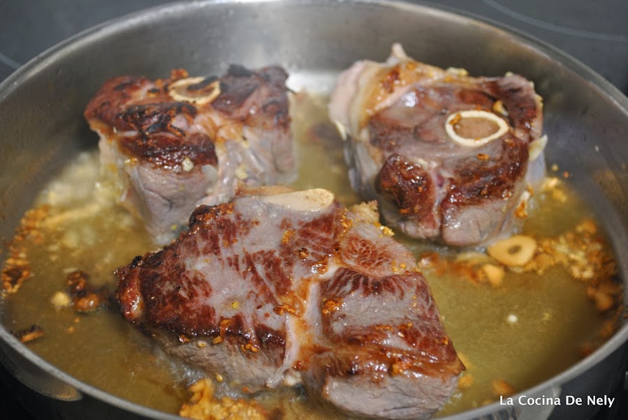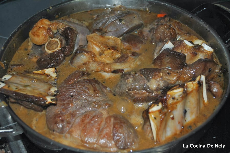 I ra cogiendo el color del cordero y luego añadimos el vino.