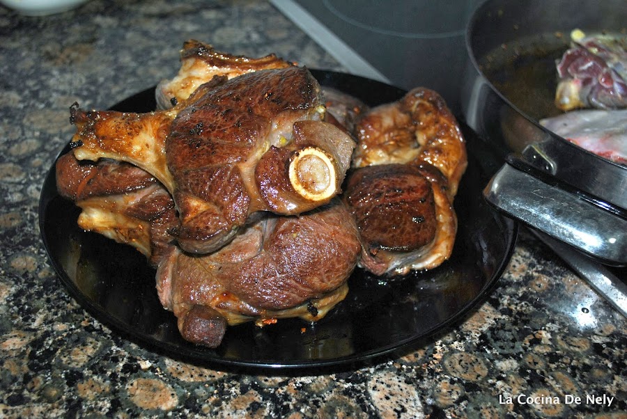 Añadimos el agua y dejamos coder en olla normal al mínimo unas 3 horas yo lo hice en olla exprés 50 min y estaba perfecto.
