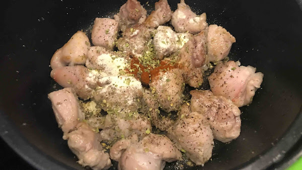 Una vez dorados los trozos de cordero añade sal, pimienta negra molida, una cucharadita de harina de trigo y media de pimentón picante. Pon también un poco de orégano seco. Remueve.