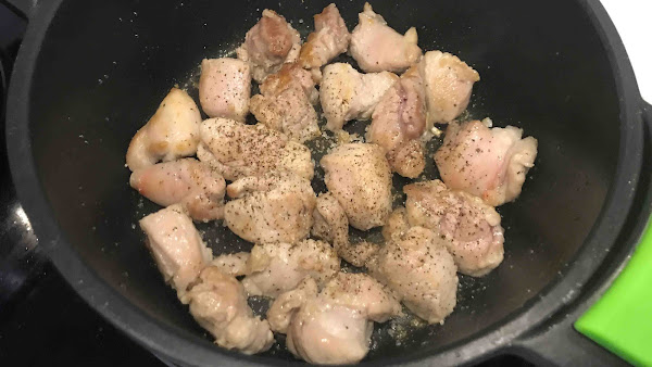 En una olla a fuego medio-alto (7/10) y unas gotas de aceite de oliva dora los trozos de carne.