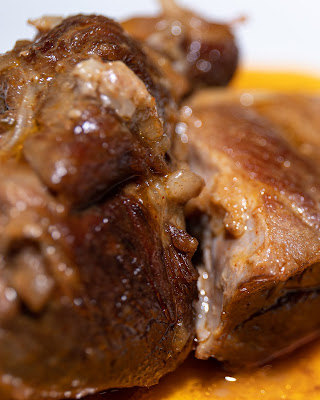 En el mortero majé el otro ajo junto con el perejil. Una vez majado añadí el pimentón, el laurel, la harina, vertí agua, lo removí y lo añadí todo a la cazuela.