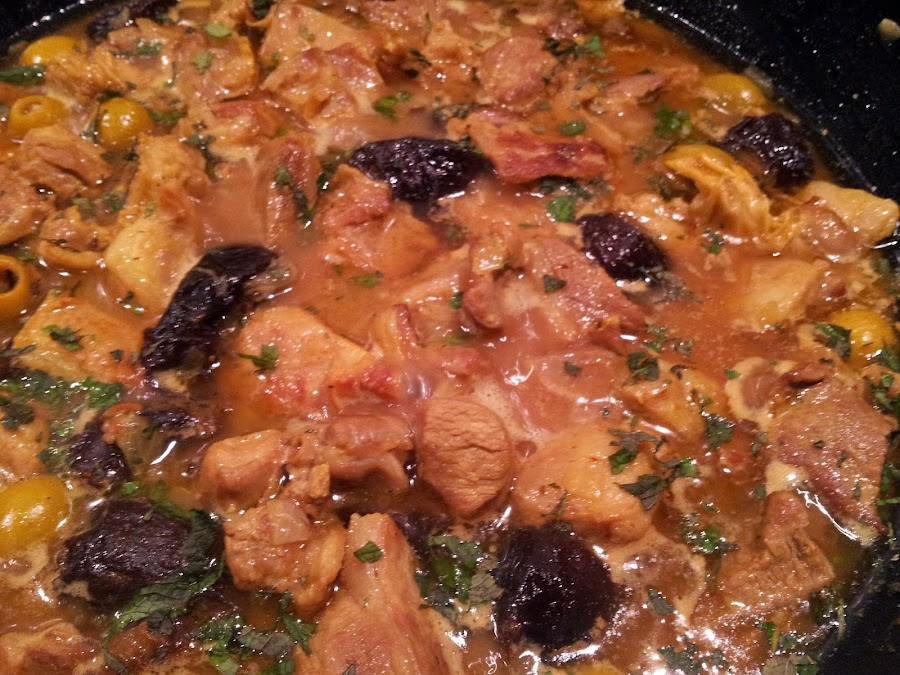 Esta plato se suele cocinar en Tajine (un recipiente de barro, con una tapa en forma de cono que facilita la cocción y la salida del vapor). Yo lo he usado para la presentación, pues el mío no es apto para mi cocina. Si os atravéis, usad el modo marroquí. Y si no, tirad de imaginación, que sé que es mucha. Silencio... se cocina.